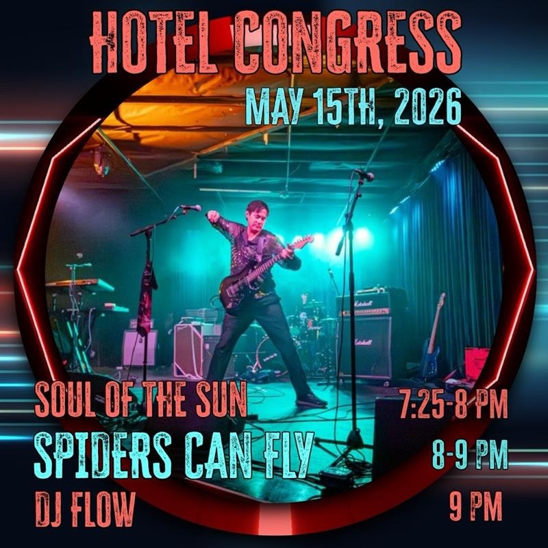 May 15, 2026 7:00 pmDoors 7pm | Show 7:30 pm | Advance $15 / Day of Show $20 + Dice Fees | 21+ W/ Soul of the Sun, DJ Flow Spiders Can Fly is a local…